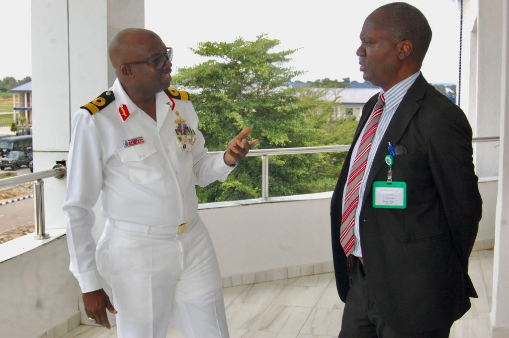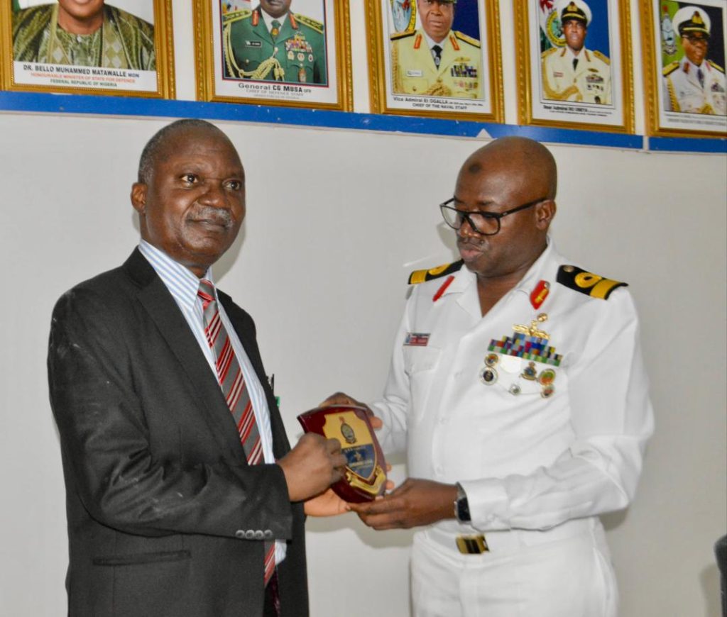 On Thursday, 7 August 2025, in a collaborative effort, the Commandant, Nigerian Navy School of Armament Technology (NNSAT), Kachia, and Maritime Component Commander, Operation FANSAN YAMMA, Commodore Chikaji Aminu Isah, hosted the Vice Chancellor, Federal University of Applied Sciences (FUAS), Kachia, Professor William Barnabas Qurix, OFR, at the NNSAT Conference Room.